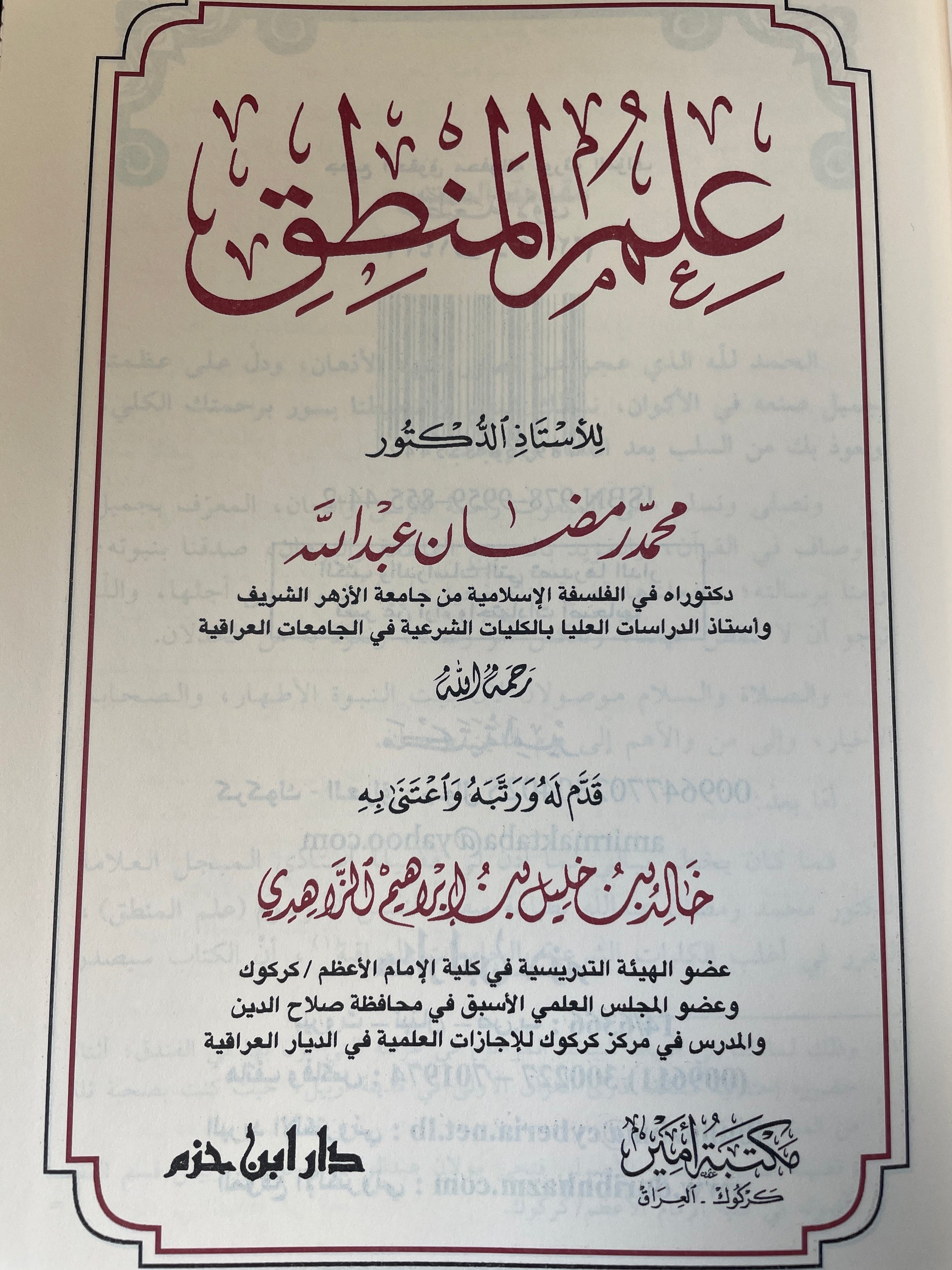 كتاب علم المنطق وهو كتاب يدرس في كليات الجامعة الإسلامية وكلية العلوم الإسلامية وكلية الإمام الأعظم في العراق للأستاذ الدكتور محمد رمضان عبد الله ، احد علماء العراق، ورئيس المجمع الفقه العراقي، وأستاذ علوم الكلام والفلسفة في الجامعة الإسلامية.