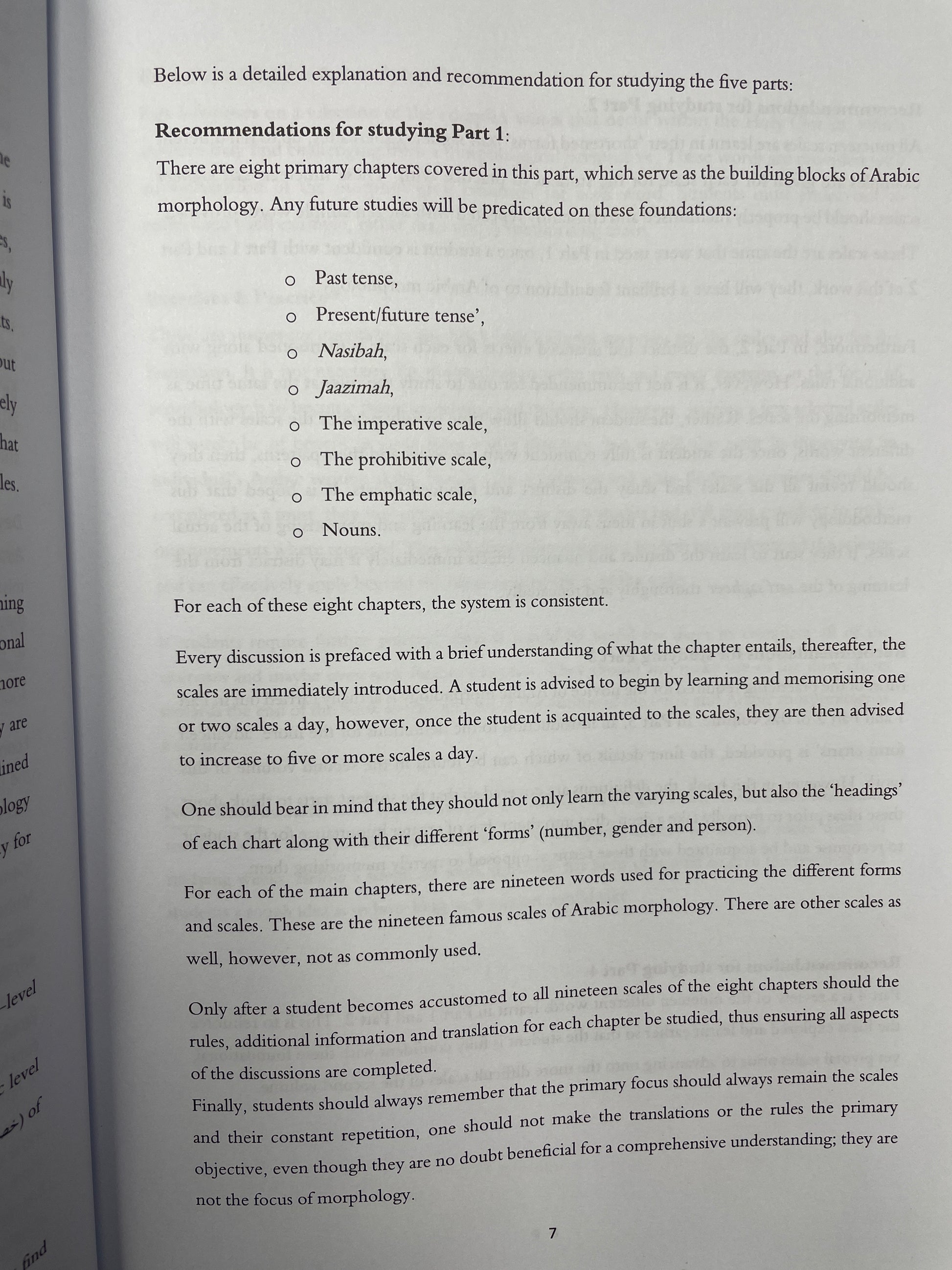 The compilation also indicates to the ‘special meanings’ and nuances of each scale. Even though this volume does not delve into the ‘advanced variations’ of these nineteen scales, a small introduction to these ‘advance variations’ is mentioned within this volume. Finally, some words regarded difficult in the Holy Qur’an by Arabic morphology students have been mentioned and explained within this volume.