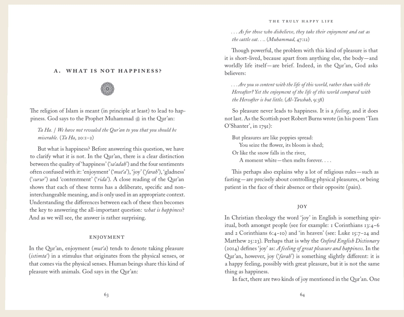In this concise and easy-to-read book, noted philosopher and Islamic scholar, Prince Ghazi of Jordan, reviews the classical philosophical and religious answers to these questions and then shows Islam’s perspective on the issue based on the Qur’an and saying of the Prophet Muhammad (Allah bless him and give him peace). The answer is a surprising yet easy one to which everyone can relate. If you want to understand happiness and want it for yourself and your family, then this is the book you have been looking for.