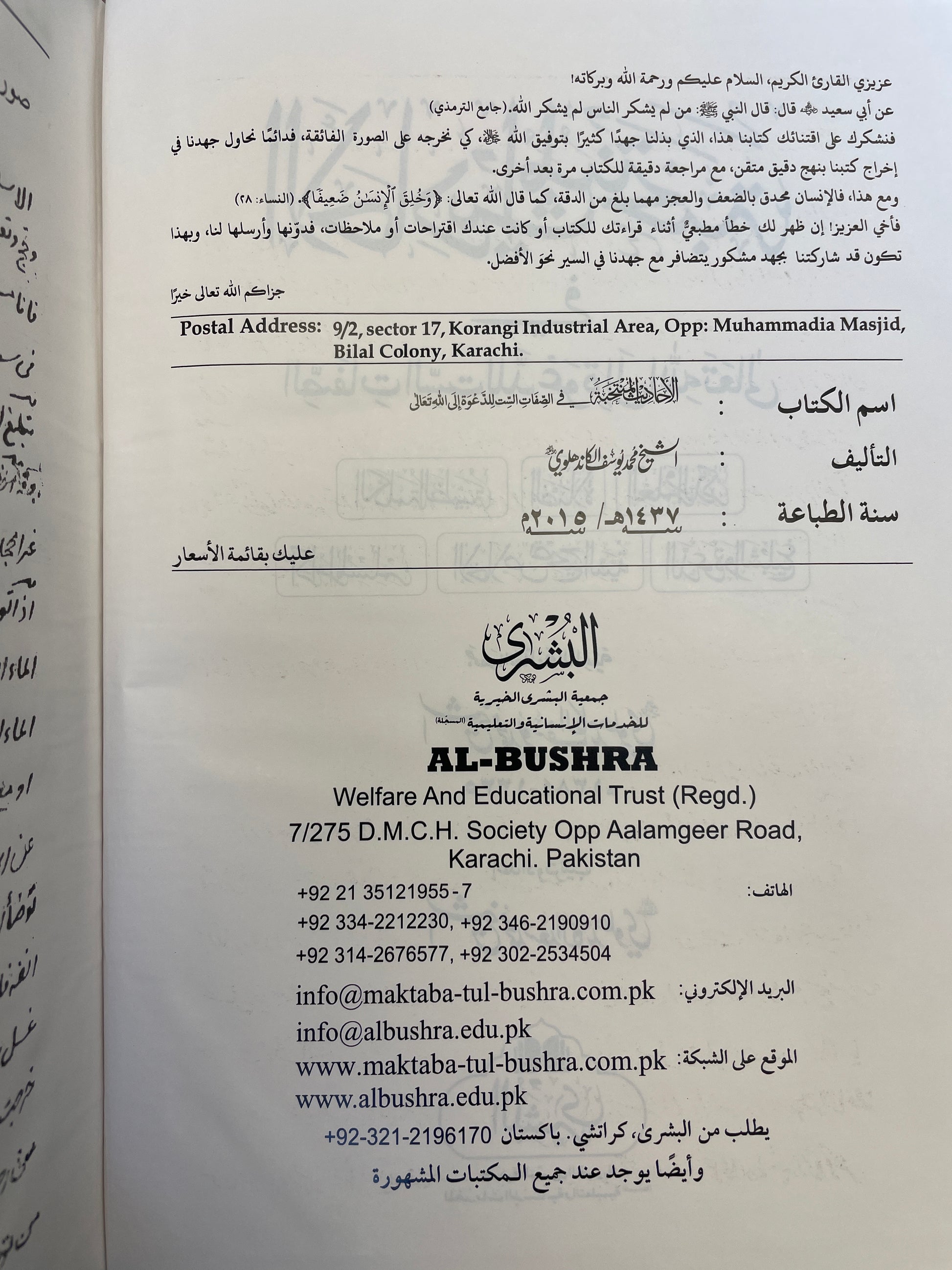 Al-Ahadith Al-Muntakhabah - الأحاديث المنتخبة في الصفات الست للدعوة الی الله تعالیٰ