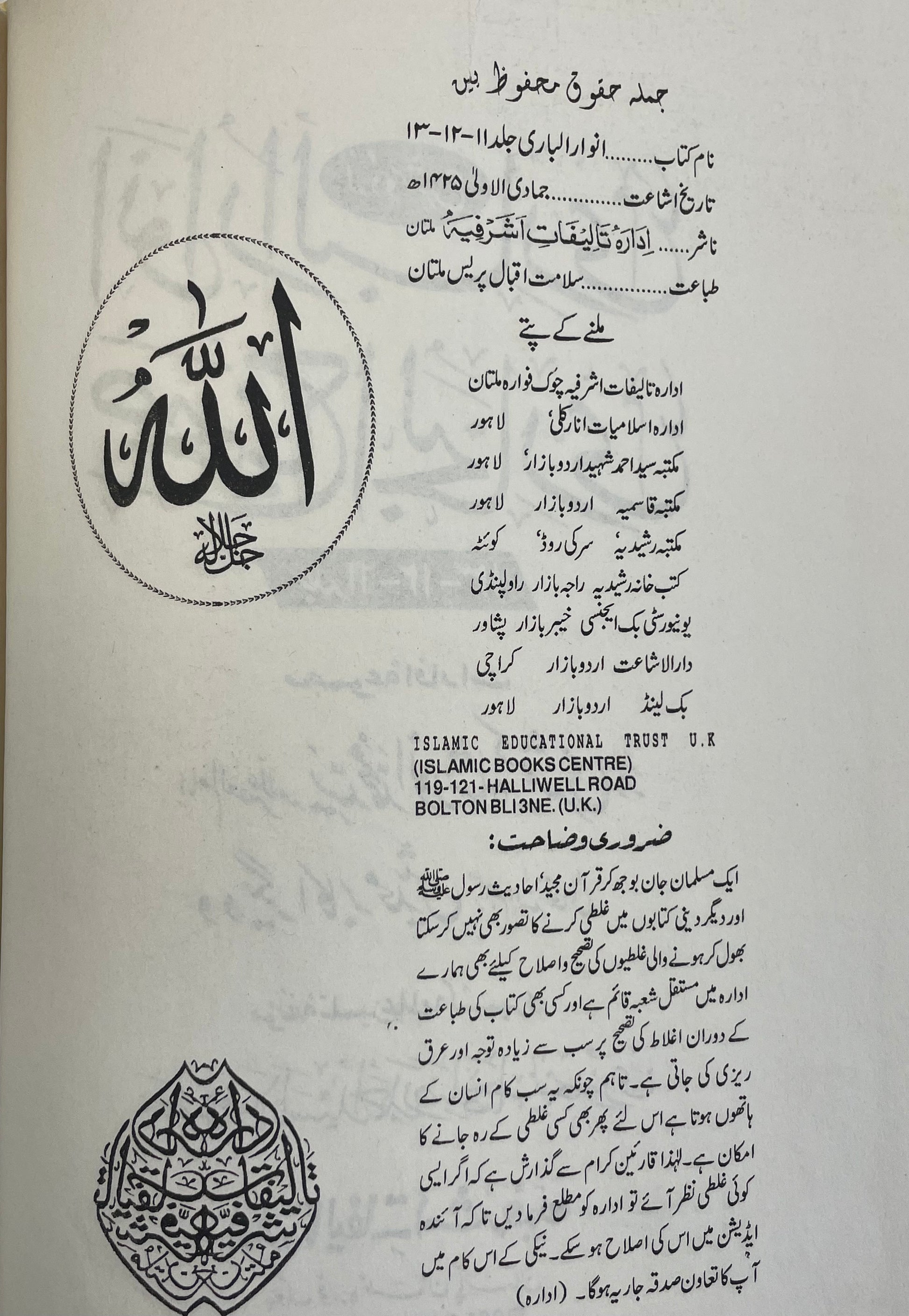 Anwaarul Baari - أنوار الباري