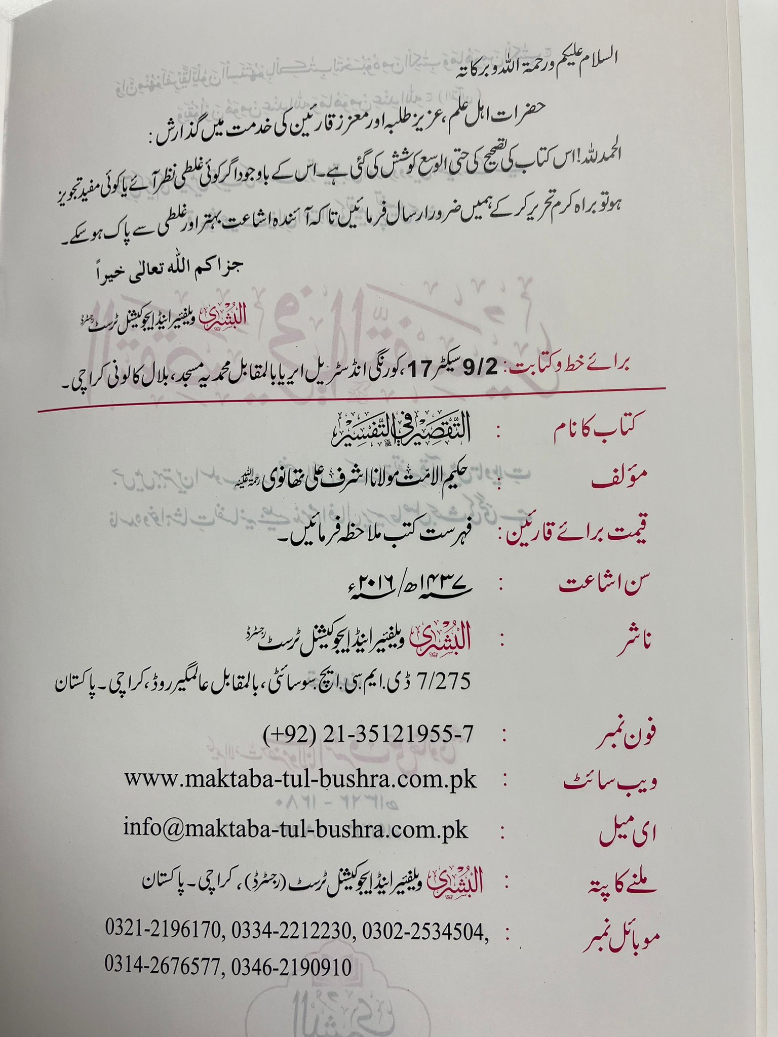 Attaqseer Fittafseer - التقصير في التيسير