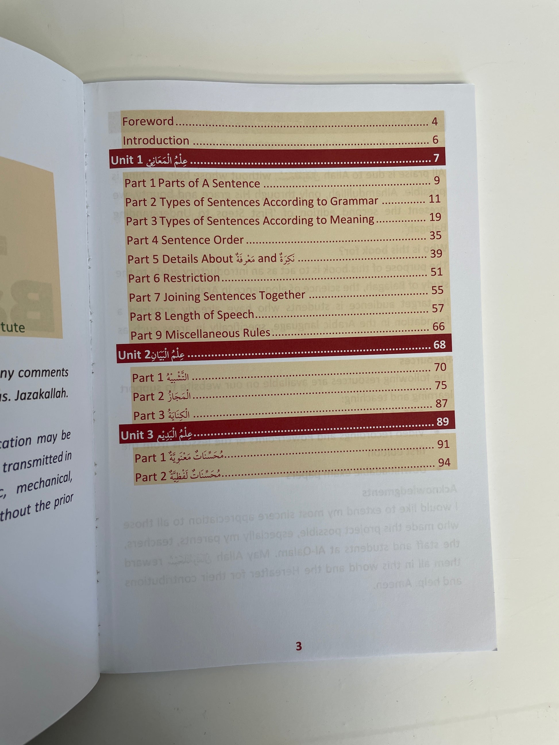 It explores, for instance, the appropriate word choice or sentence structure, e.g., the positioning of a Maf'ul Bihi in relation to the verb.