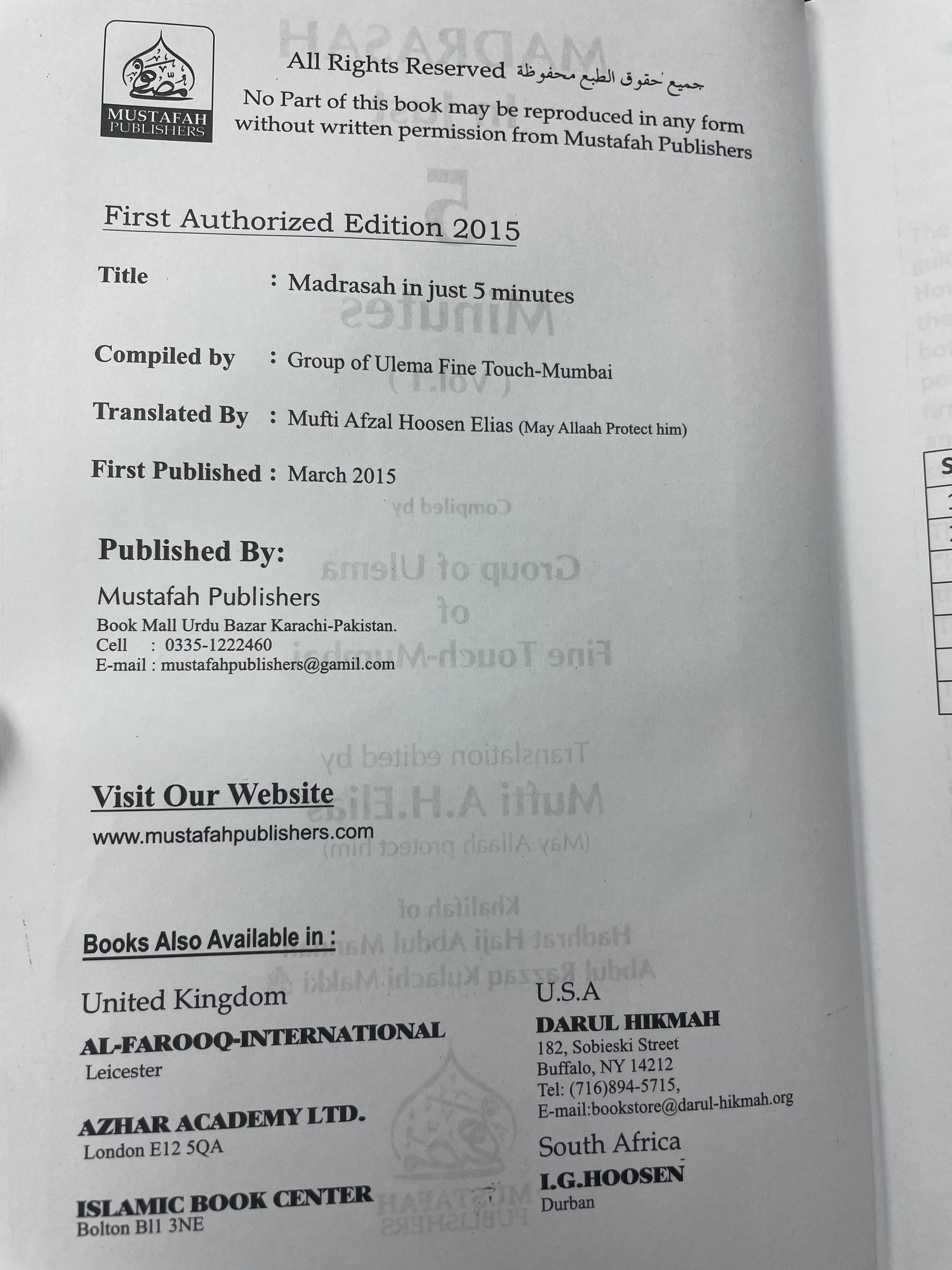 Madrasah in just 5 Minutes (2 Vol book)