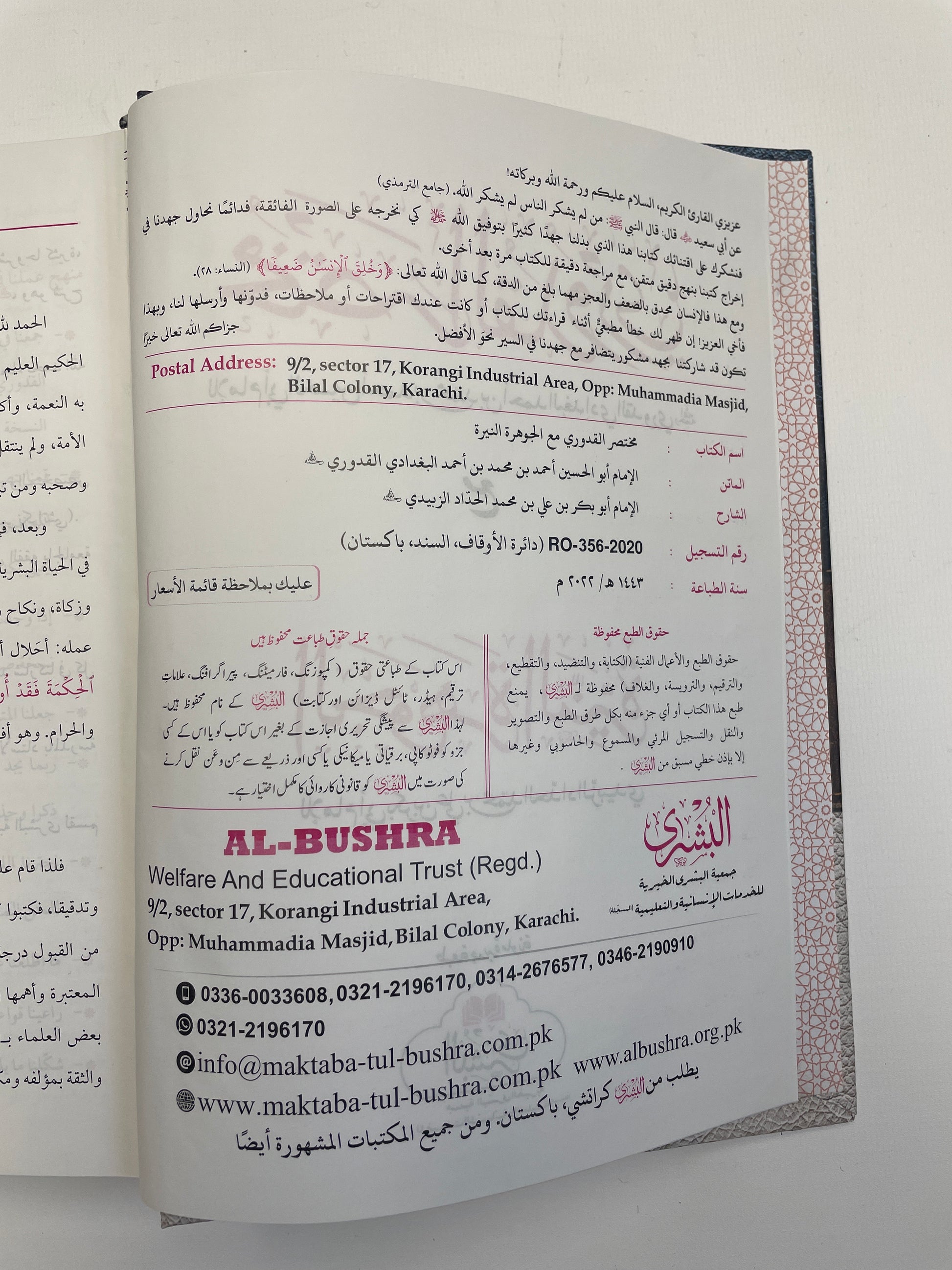 Mukhtasarul Qudoori - مختصر القدوري مع شرحه الجوهرة النيرة