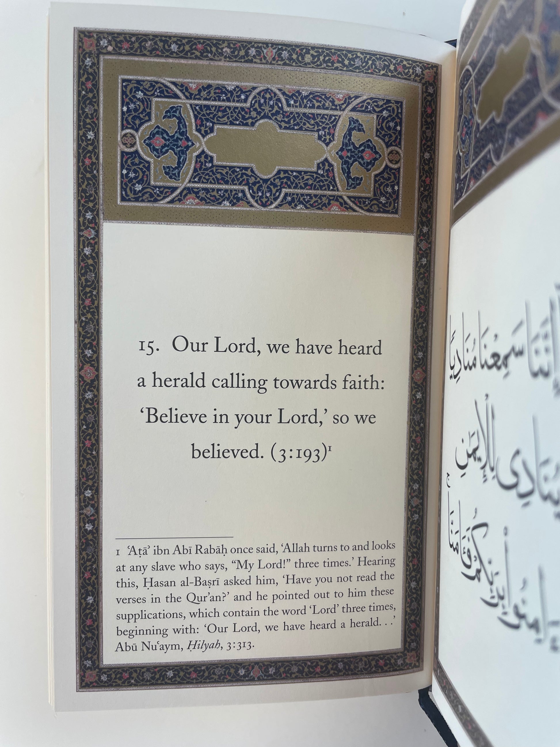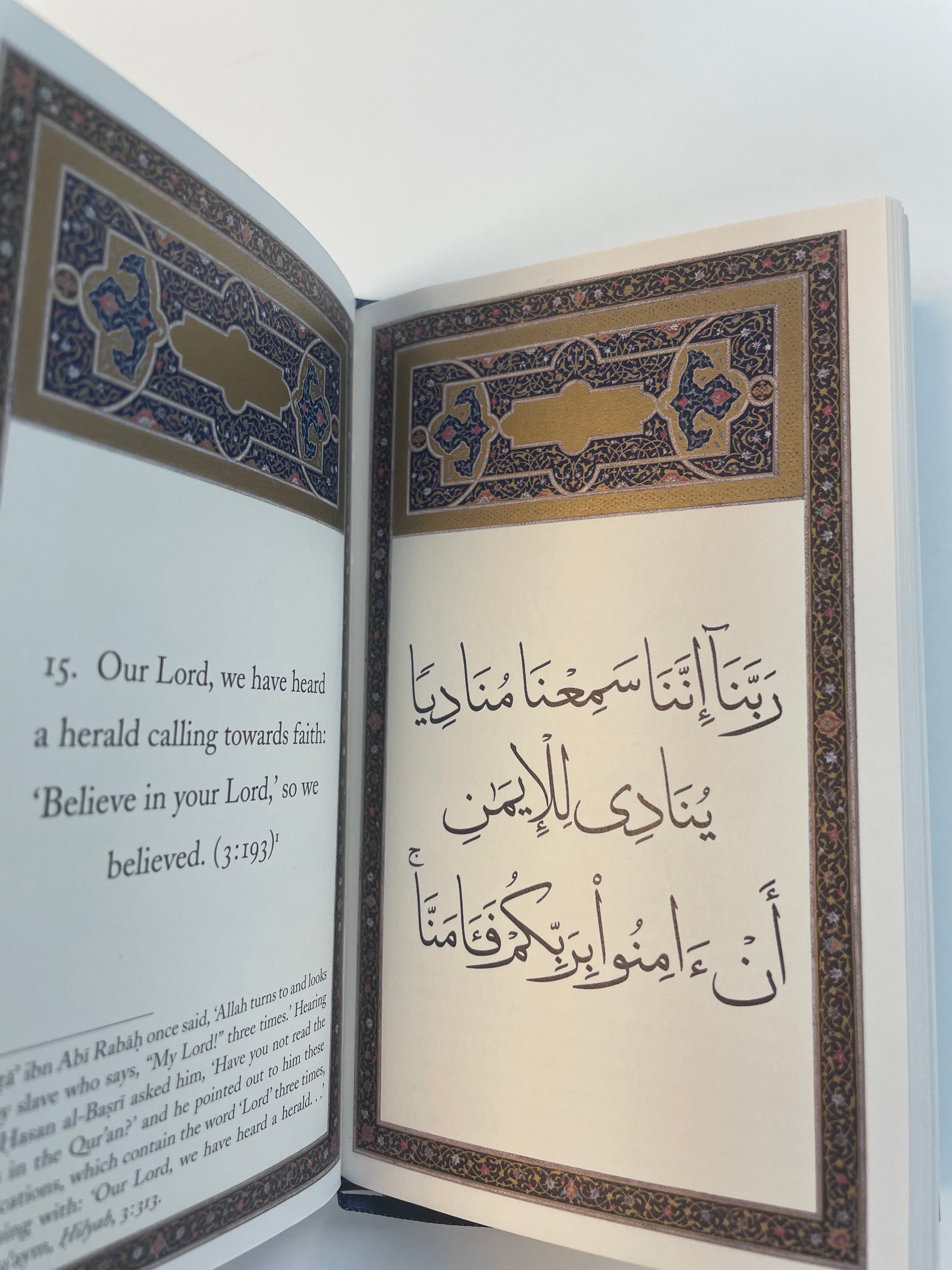 This is a deluxe edition of the classic collection of the Rabbanā verses, beautifully bound in leather with the calligraphy presented on Pantone gold and Pantone blue designed pages; an ideal gift for your dear ones to bring them closer to our Lord.