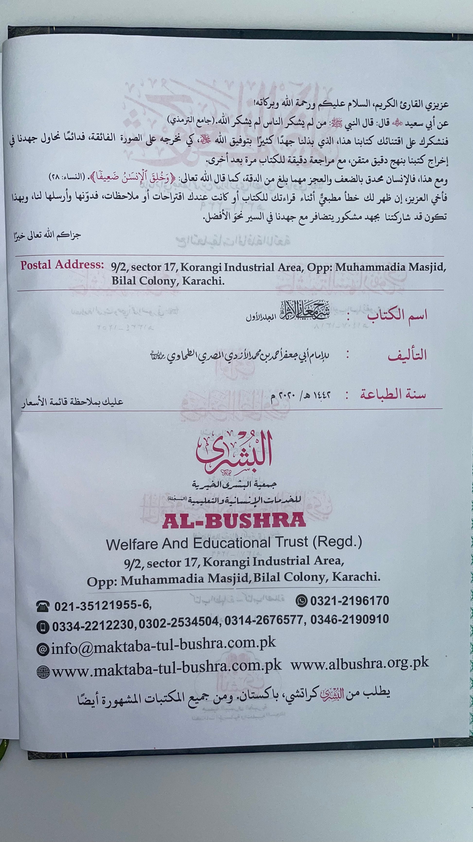 Sharhu Maani il Aathar 2020 Edition - شرح معاني الاثار