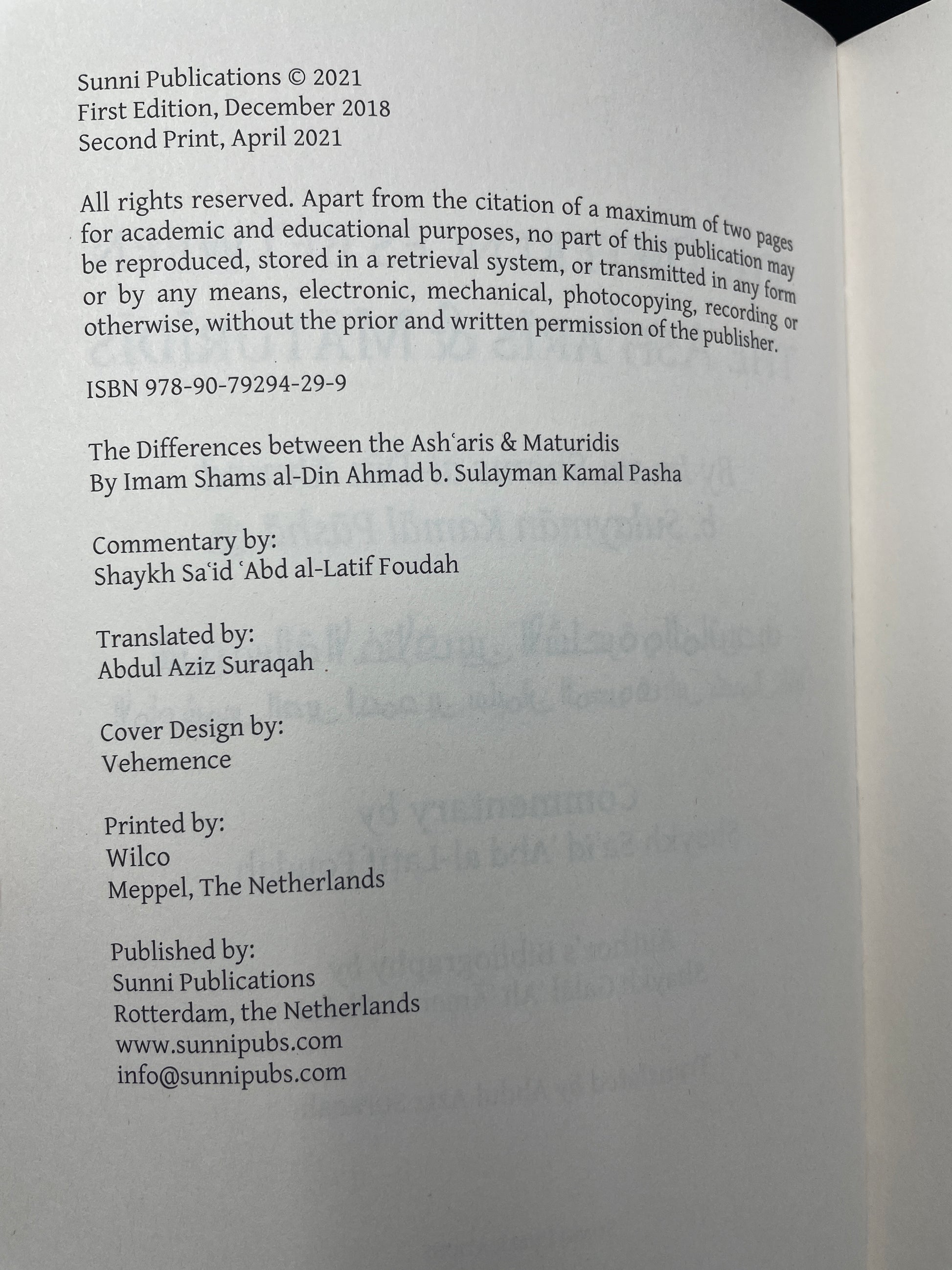 Invaluable in elaborating on these differences is the expert commentary of leading contemporary theologian Shaykh Saʿid Foudah in which he succinctly explains the causes of the disagreements and their levels, allowing the reader to benefit from the objective of the treatise.